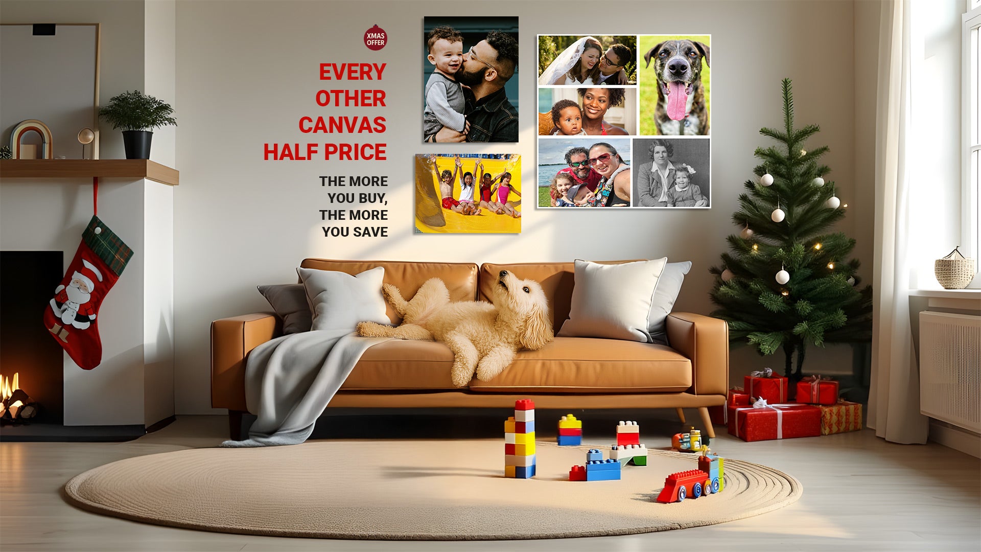 Enjoy beautiful, personalised canvas prints this Christmas with our unlimited Buy One, Get One Half Price offer. Create thoughtful gifts, cosy festive dรฉcor and stunning wall art for your home, all professionally printed here in the UK.