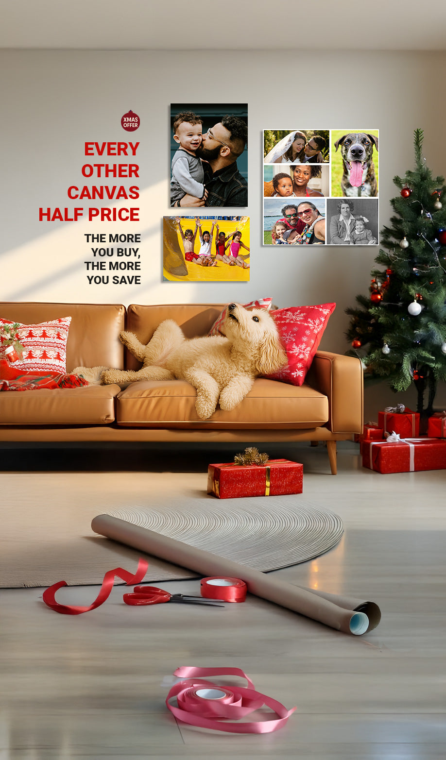 Enjoy beautiful, personalised canvas prints this Christmas with our unlimited Buy One, Get One Half Price offer. Create thoughtful gifts, cosy festive dรฉcor and stunning wall art for your home, all professionally printed here in the UK.